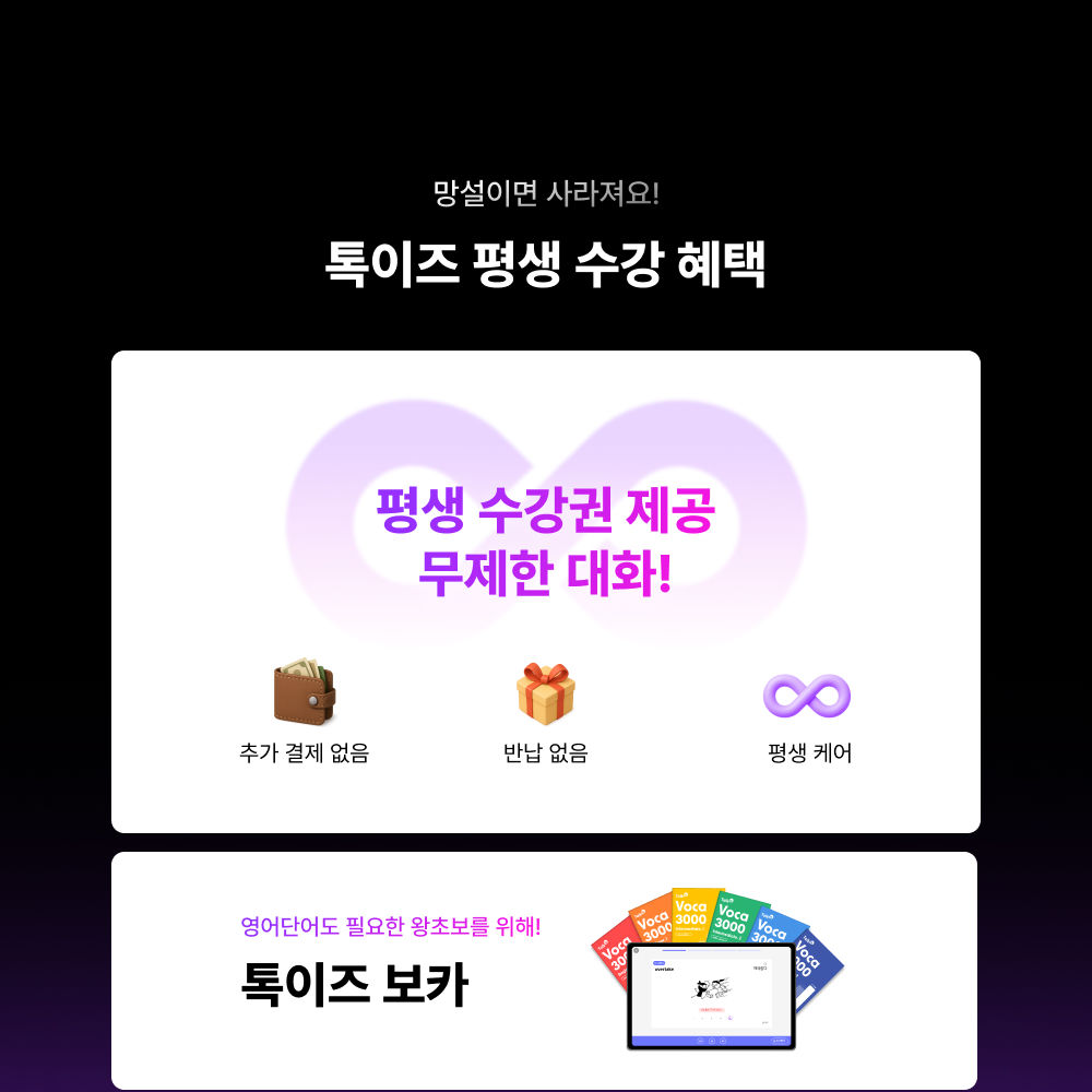 - 본 상품은 레슨톡, 프리톡, 보카 콘텐츠, 레슨북이 포함된 패키지입니다.